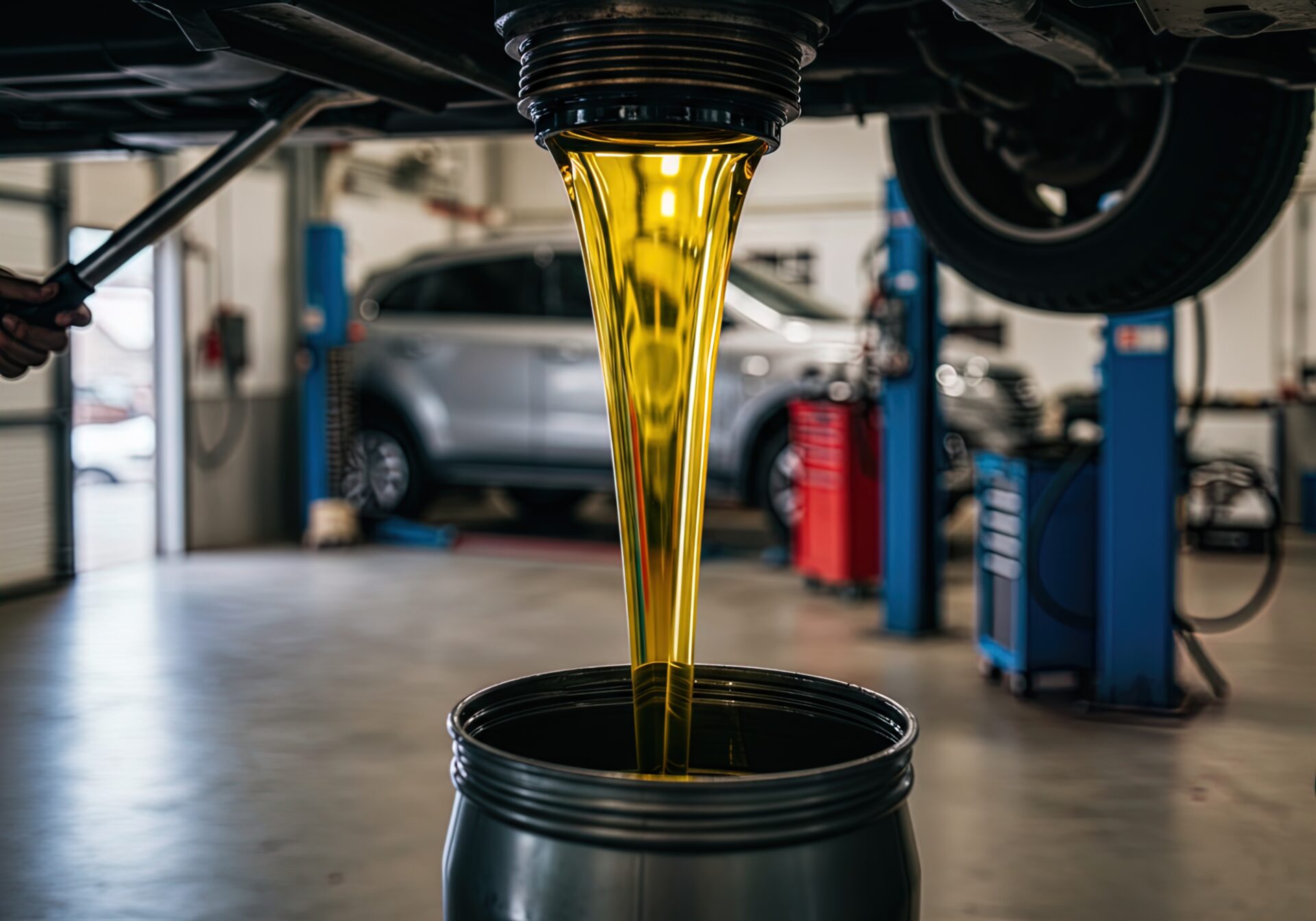 Mechanic Pouring Motor Oil into Container During Car Oil Change